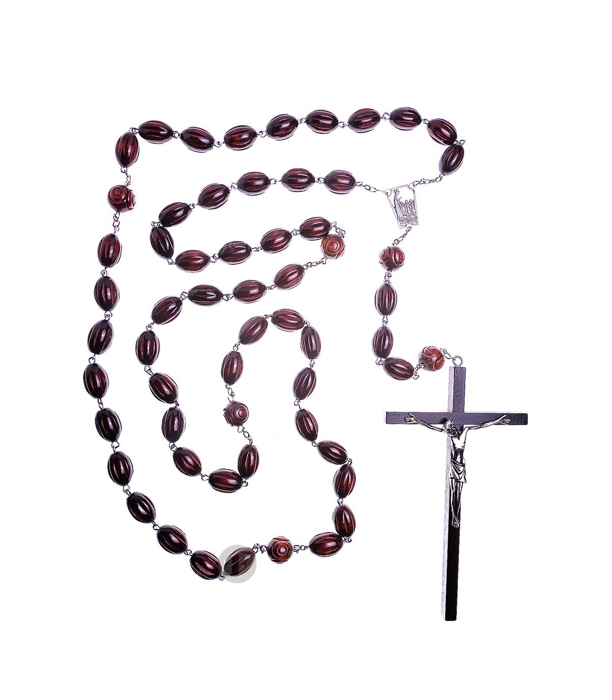 Wood rosary, dark brown, buds, oval, 30/20mm