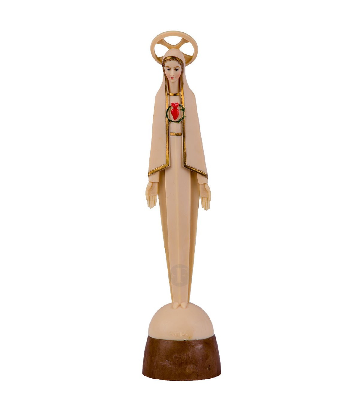 Stylized Immaculate Heart of Mary in recycled polystyrene with 17,5 cm in size. Ivory imitation with goldeen stripe.