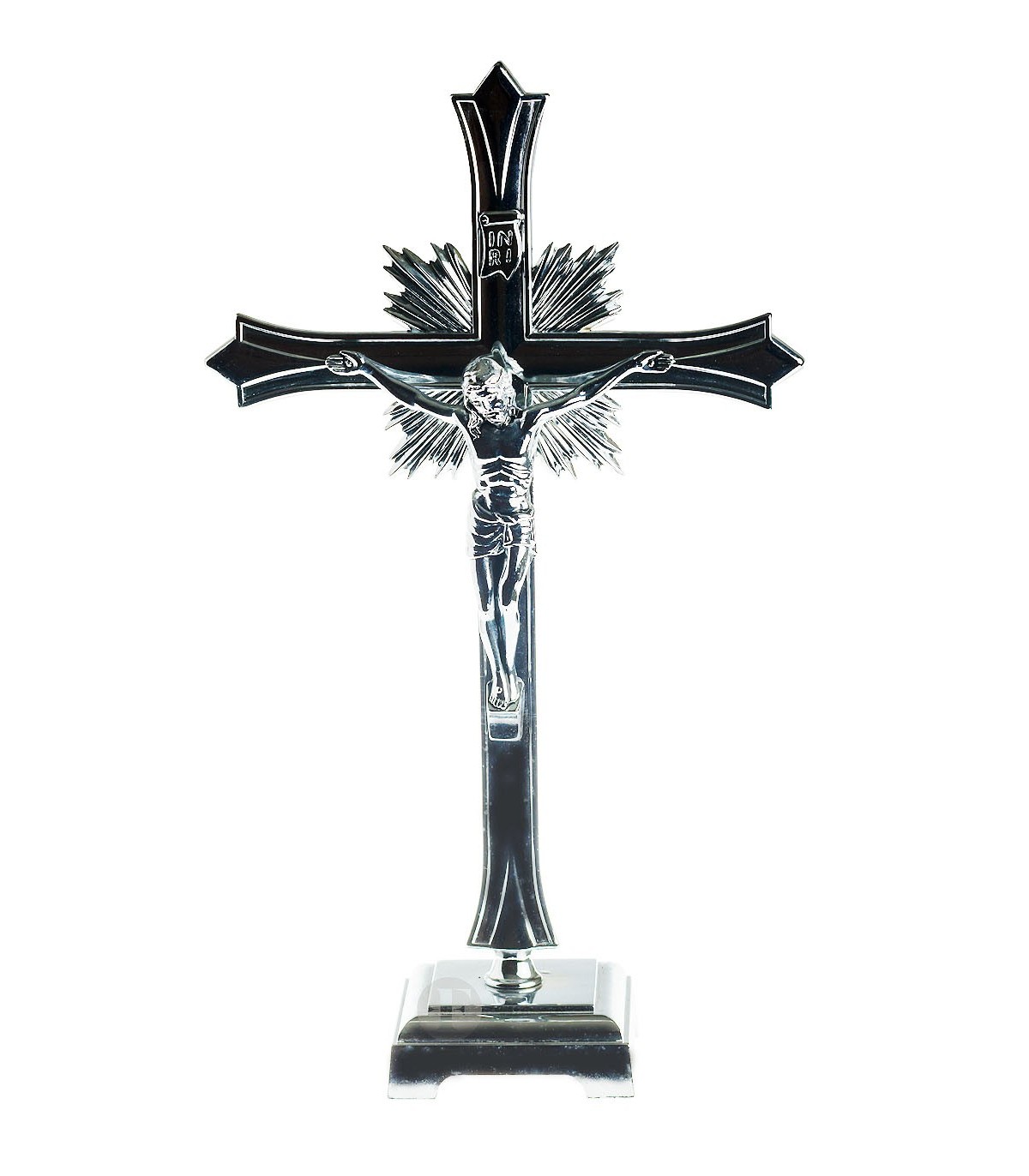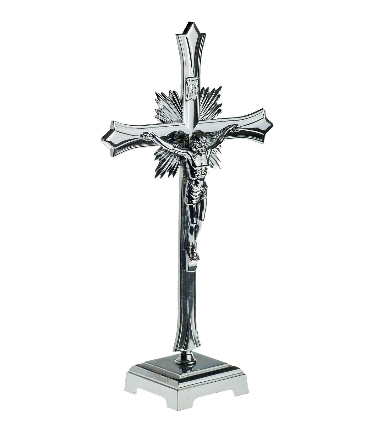 Metal Crucifix, Chrome plated, 30x18cm in dimensions. With base.