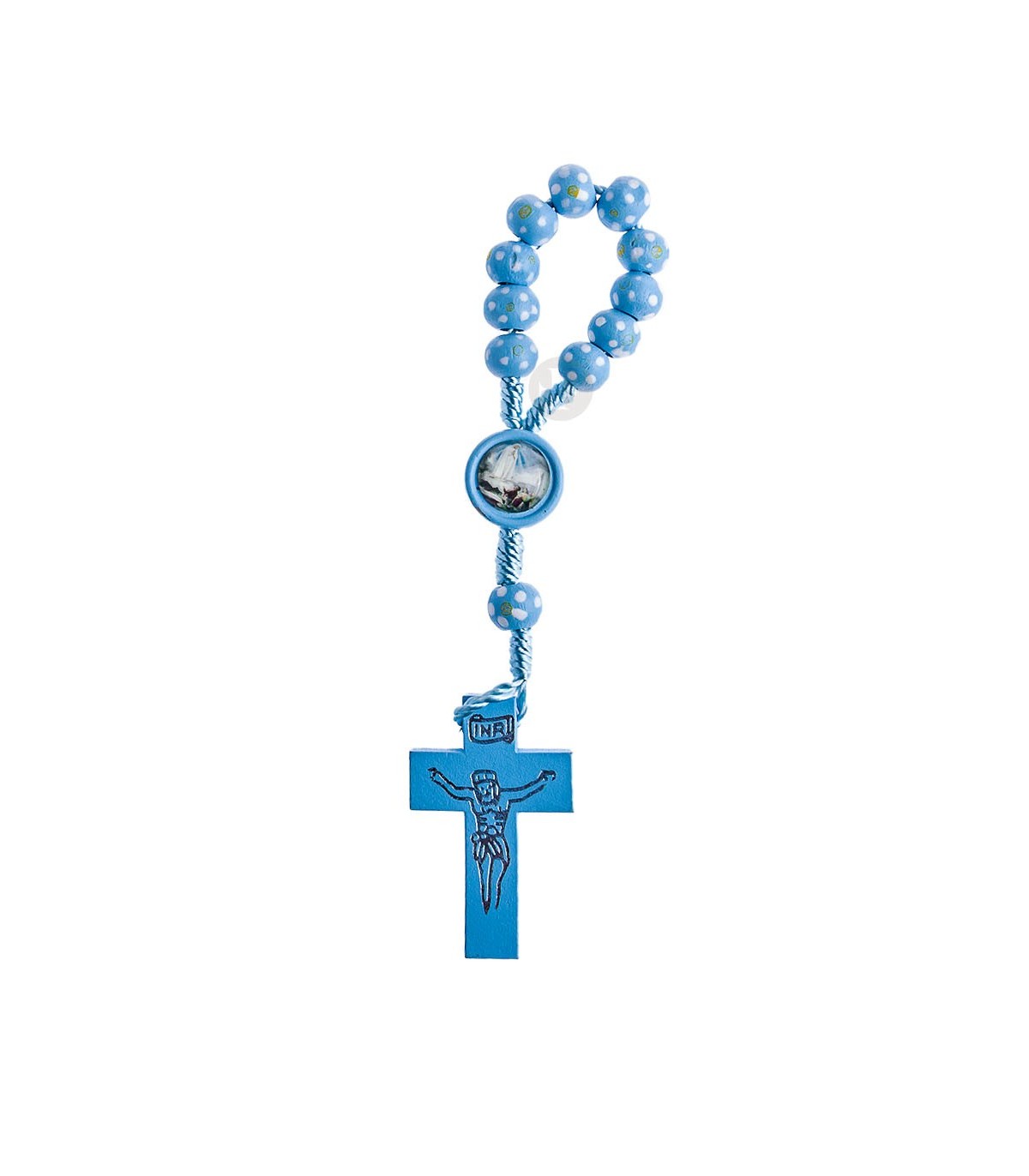 Wood ten with twine, blue. Hand made. Beads with 7 mm in size.