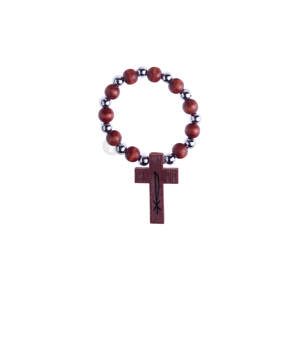 Wood ten, brown, with elastic. Hand made. Beads with 7 mm in size.