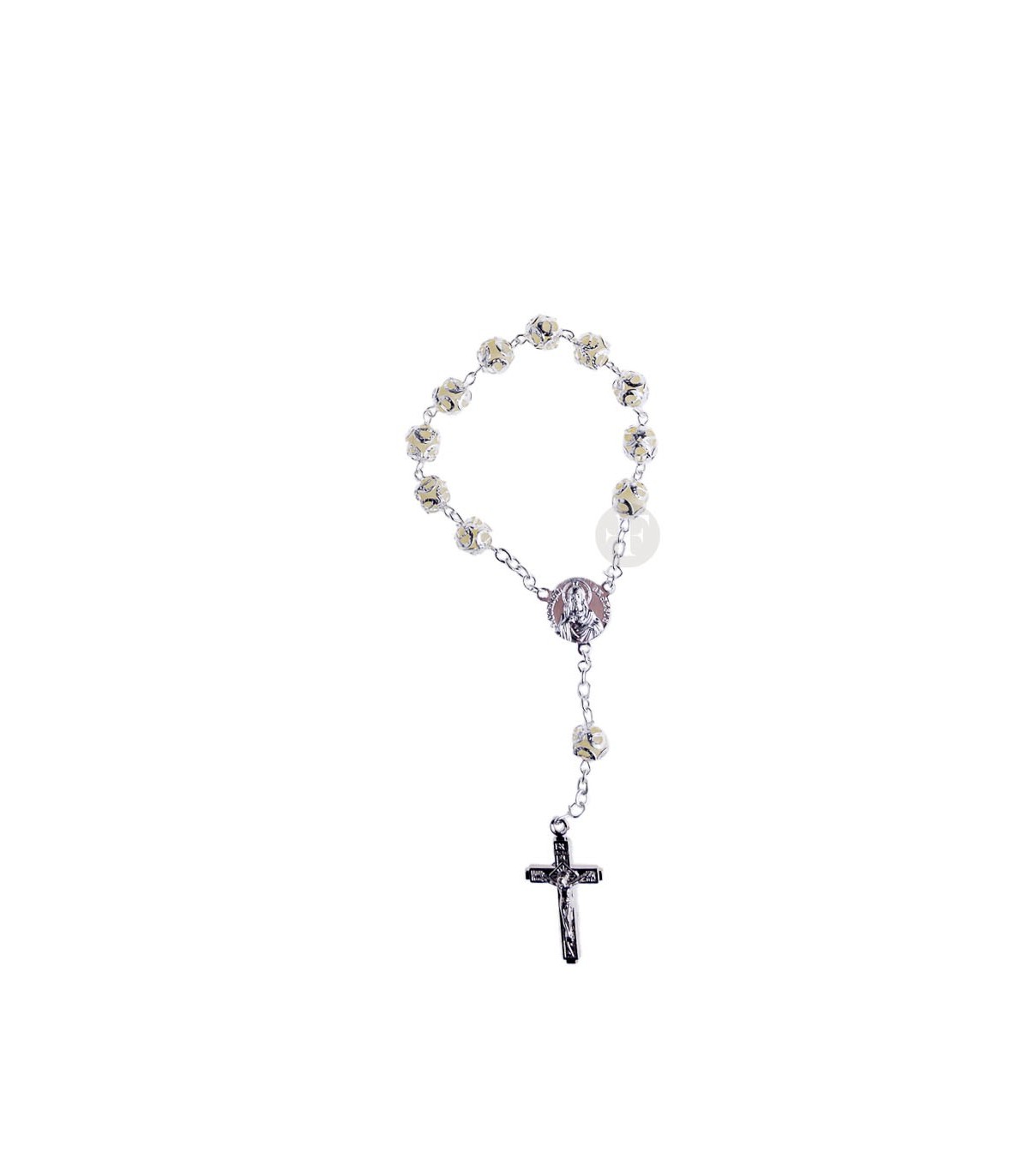 Plastic ten, ivory, with trim. Hand made. Beads with 7 mm in size.