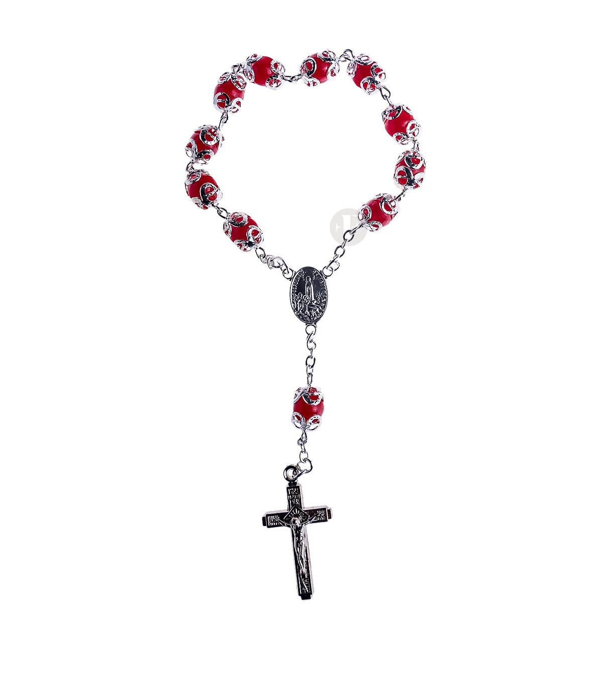 Plastic ten, red, with trim. Hand made. Beads with 7 mm in size.