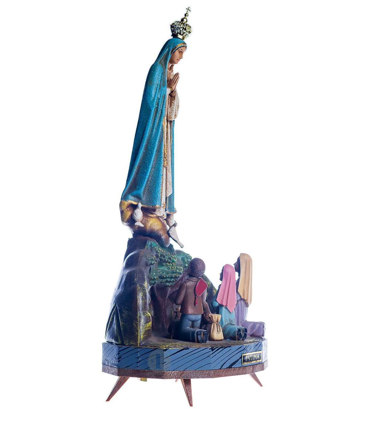 Aparição em poliestireno reciclado com 32 cm de tamnaho. Pintura granitada. Com música. Totalmente pintada à mão.