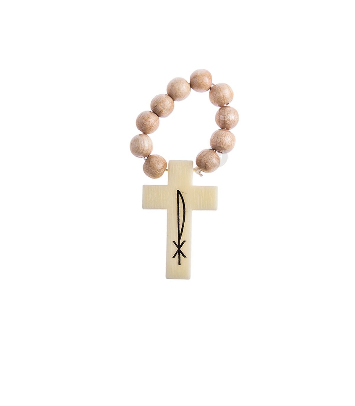 Dezena de Madeira com cordel, simples. Feito à mão. Contas com 7 mm de tamanho.