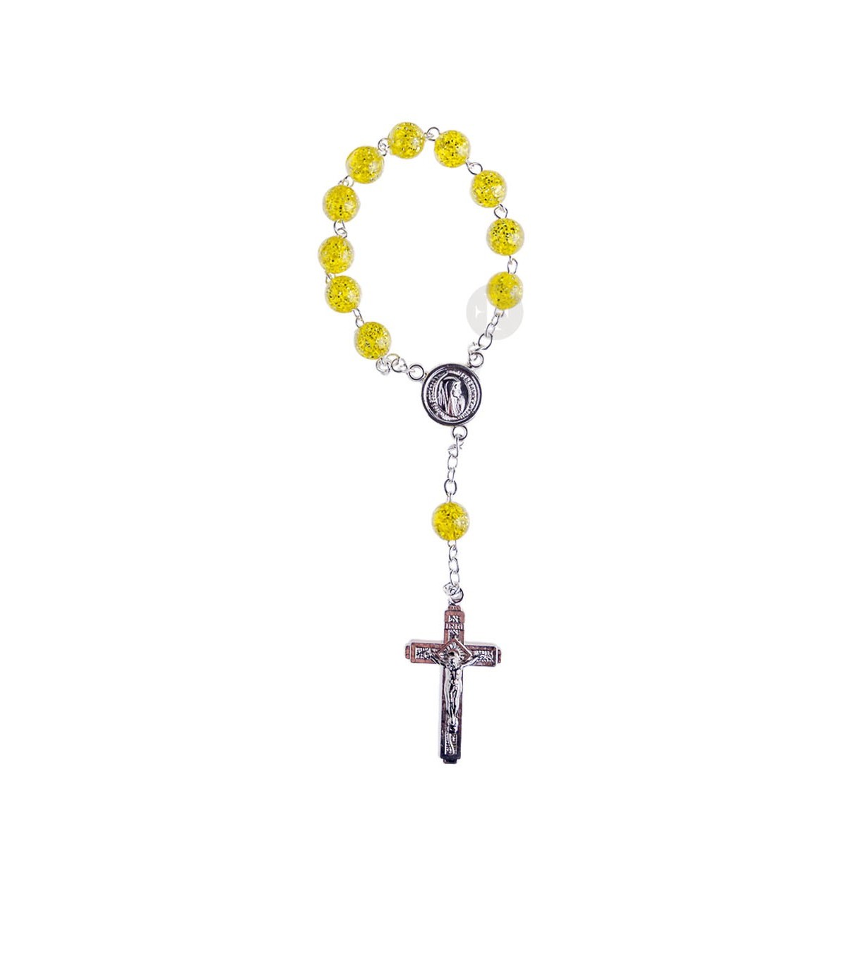 Dezena de Plástico, matizada, amarela. Feito à mão. Contas com 8 mm de tamanho.