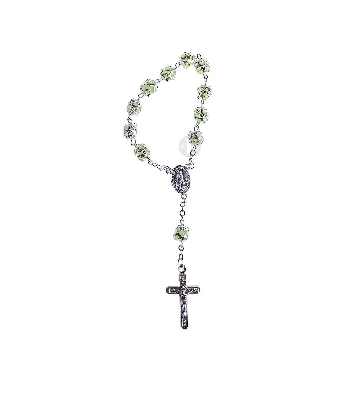 Dezena de Plástico, com guarnição. Feito à mão. Contas com 8 mm de tamanho.