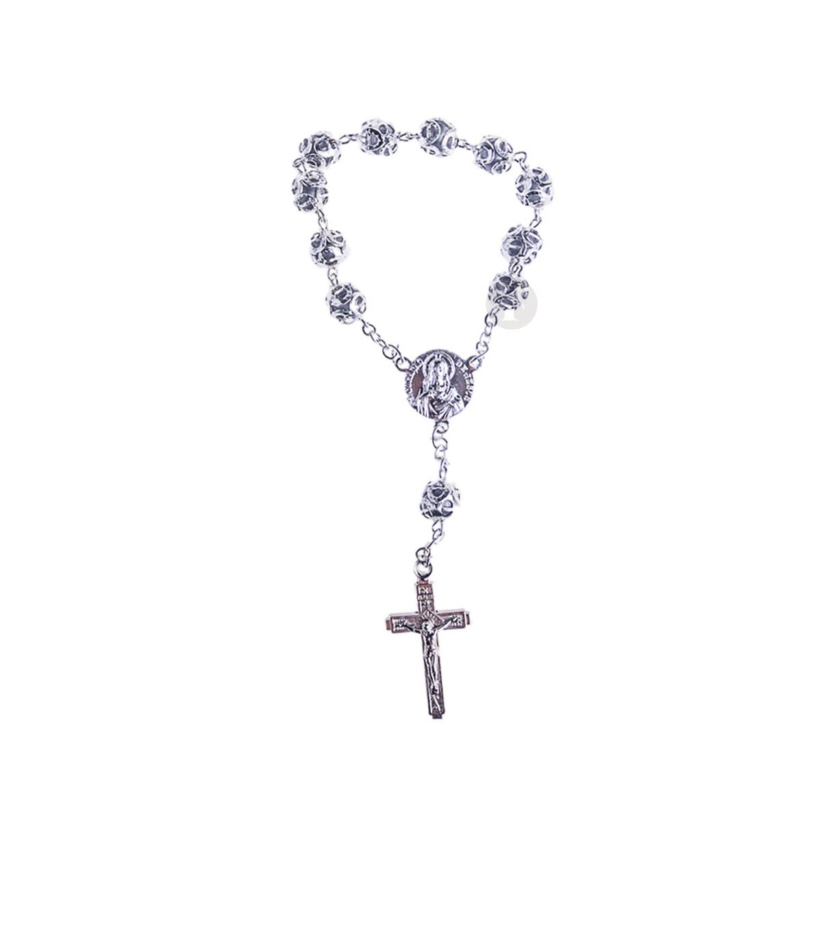 Dezena de Plástico, cinza, com guarnição. Feito à mão. Contas com 8 mm de tamanho.
