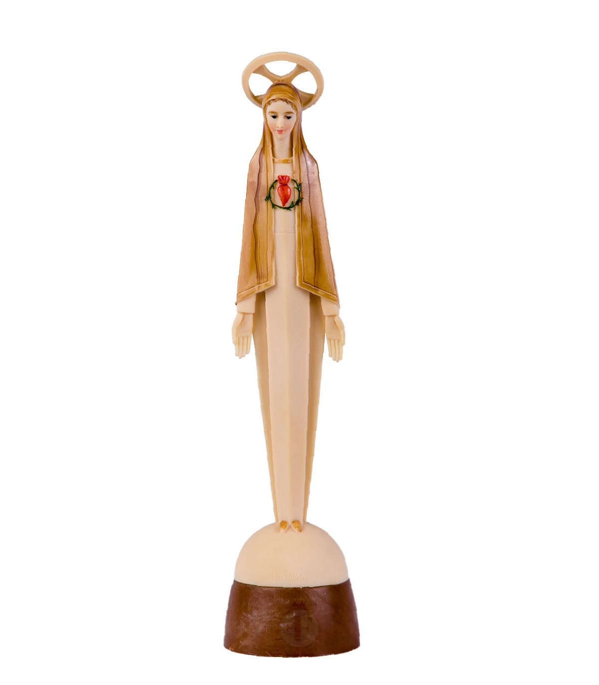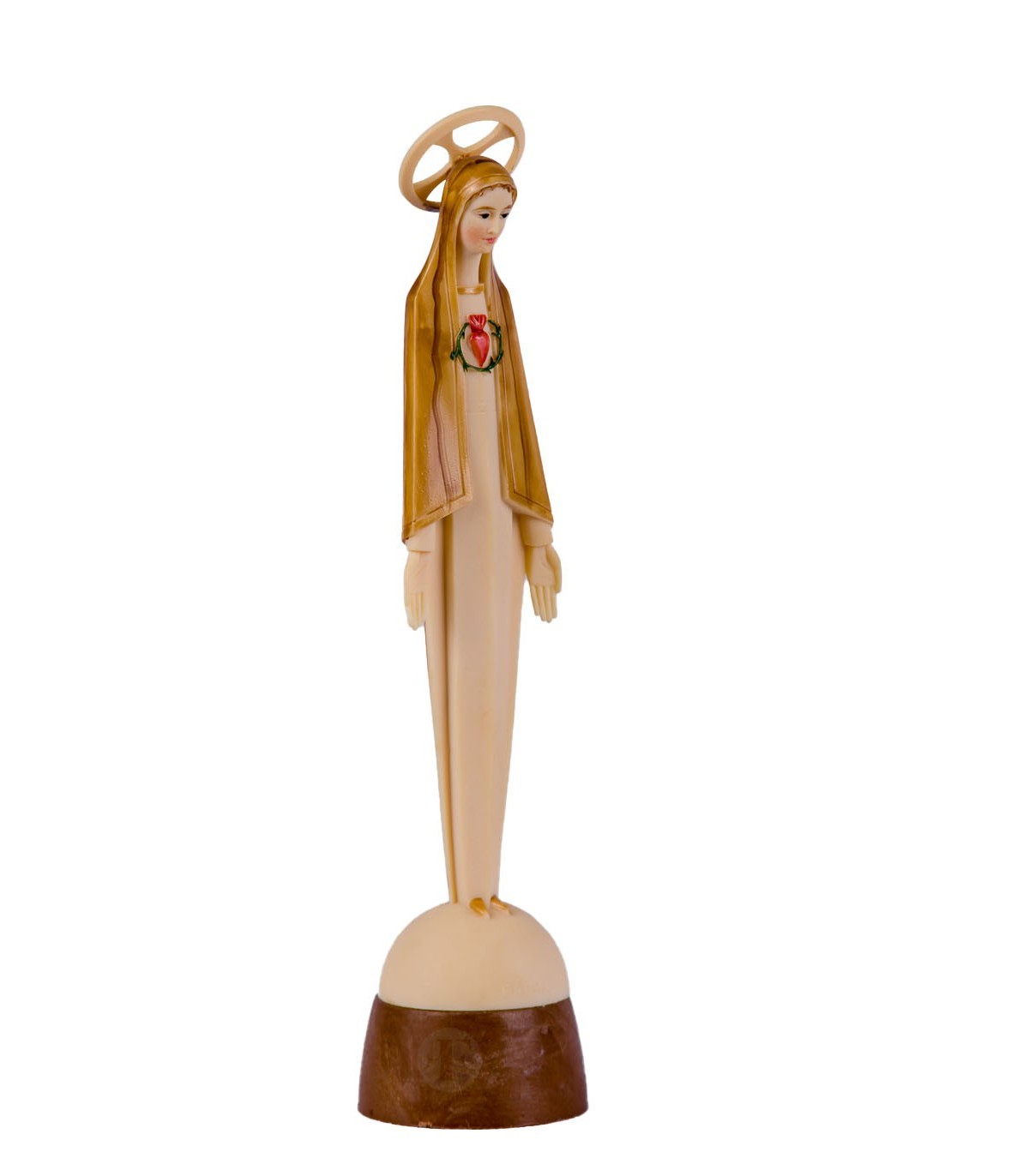Imaculado Coração de Maria em poliestireno reciclado com 17,5 cm de tamanho, estilizado. Imitação de madeira. Totalmente pintado à mão.
