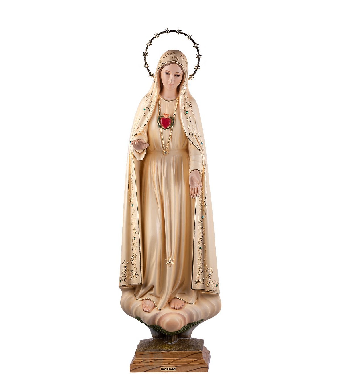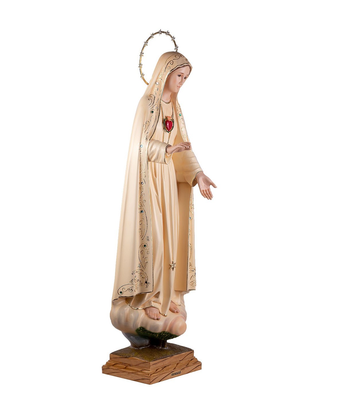 Imaculado Coração de Maria em poliestireno reciclado com 85 cm de tamanho e olhos em cristal. Pintura patinada. Totalmente pintado à mão.
