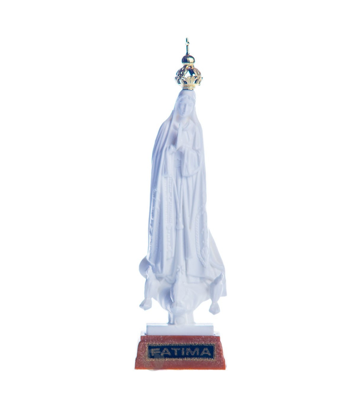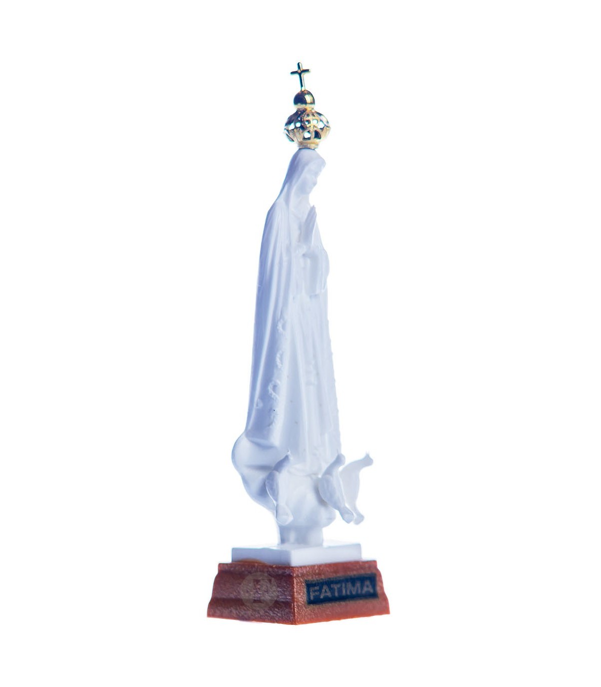 Nossa Senhora de Fátima em poliestireno reciclado com 9 cm de tamanho. Côr branca.