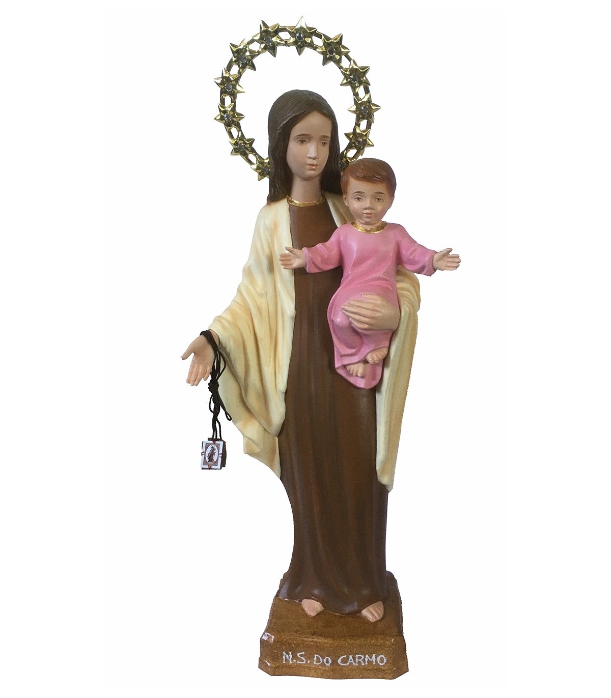 Nossa Senhora do Carmo em poliestireno reciclado com 47 cm de tamanho. Totalmente pintada à mão.