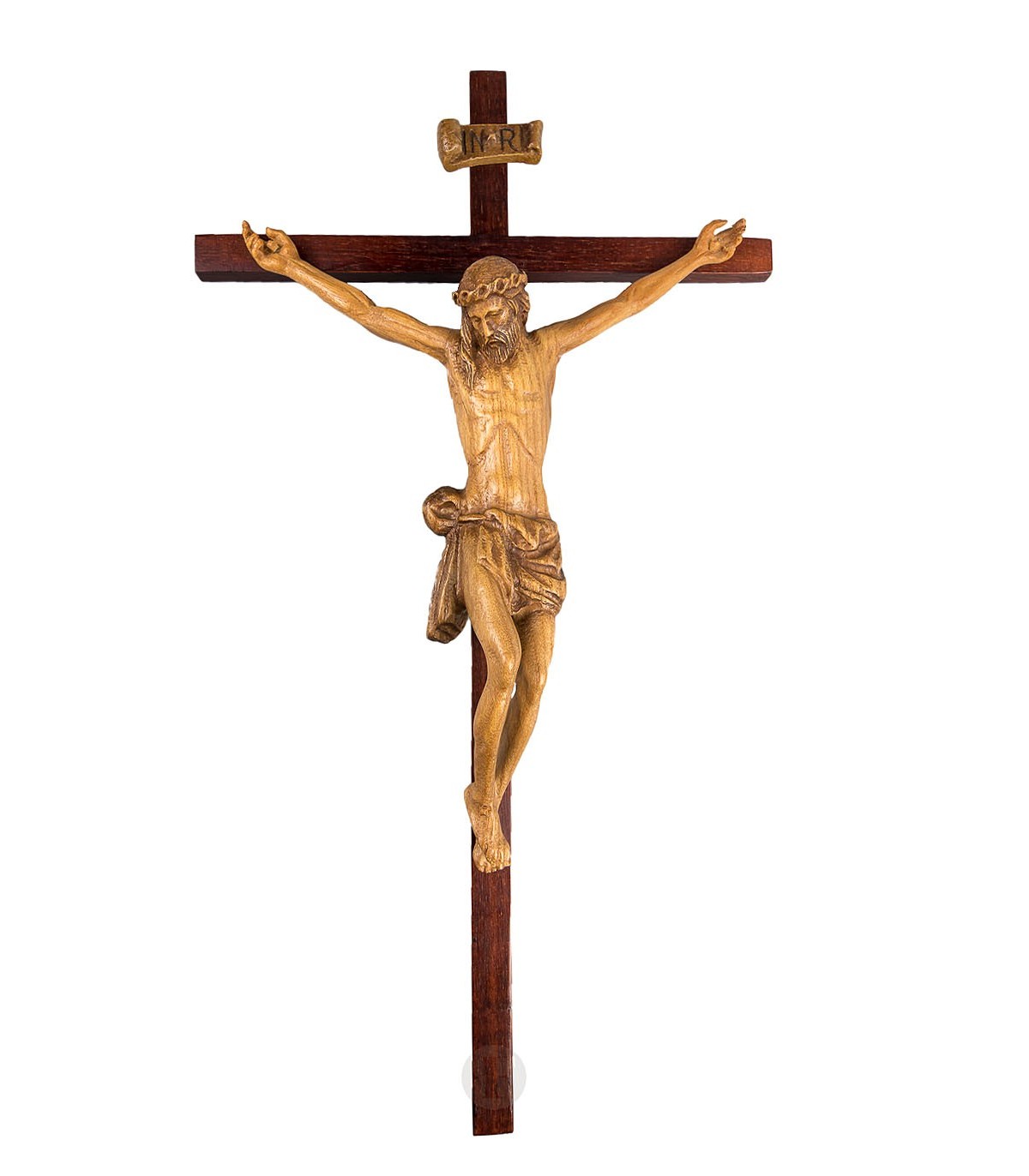 Crucifixo de Madeira com Cristo em Madeira, com 41x23,5cm de dimensões.