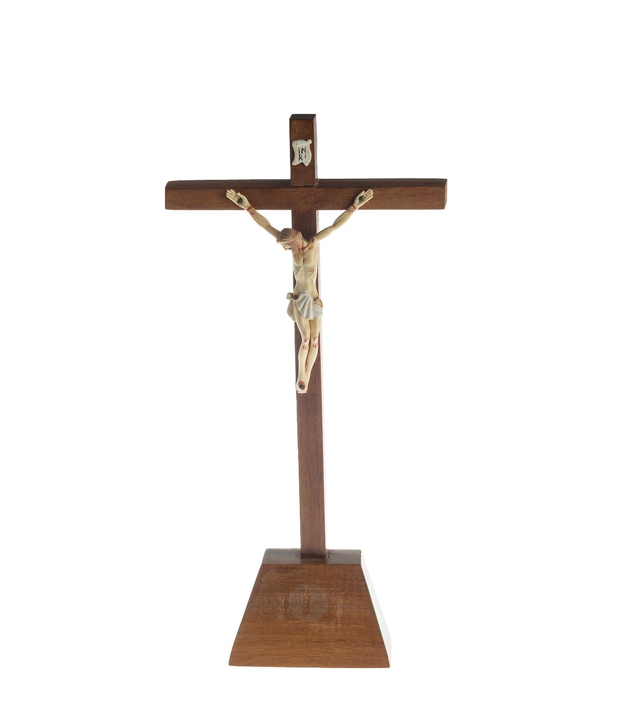 Cruxifixo de Madeira, com Cristo de Plástico, com base, 22,5x11cm