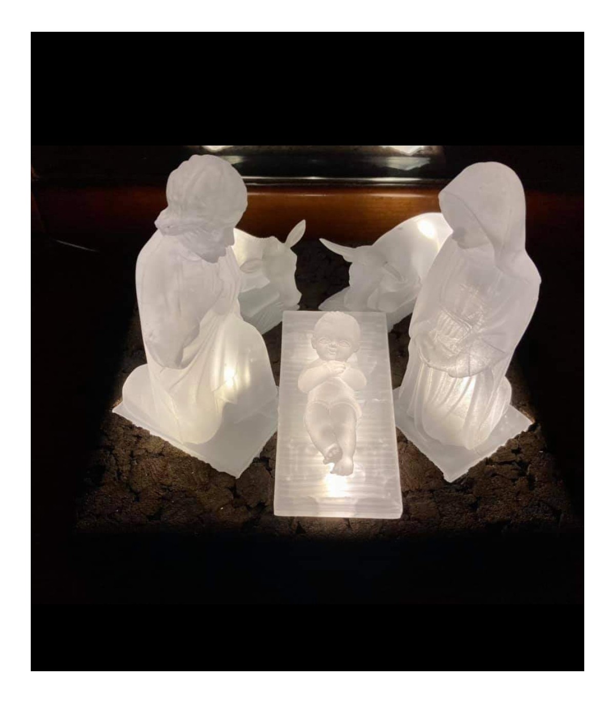 Presépio Eletrificado em poliestireno reciclado com base em cortiça. Inclcui transformador e luzes LED interiores. 20 cm de altura.
