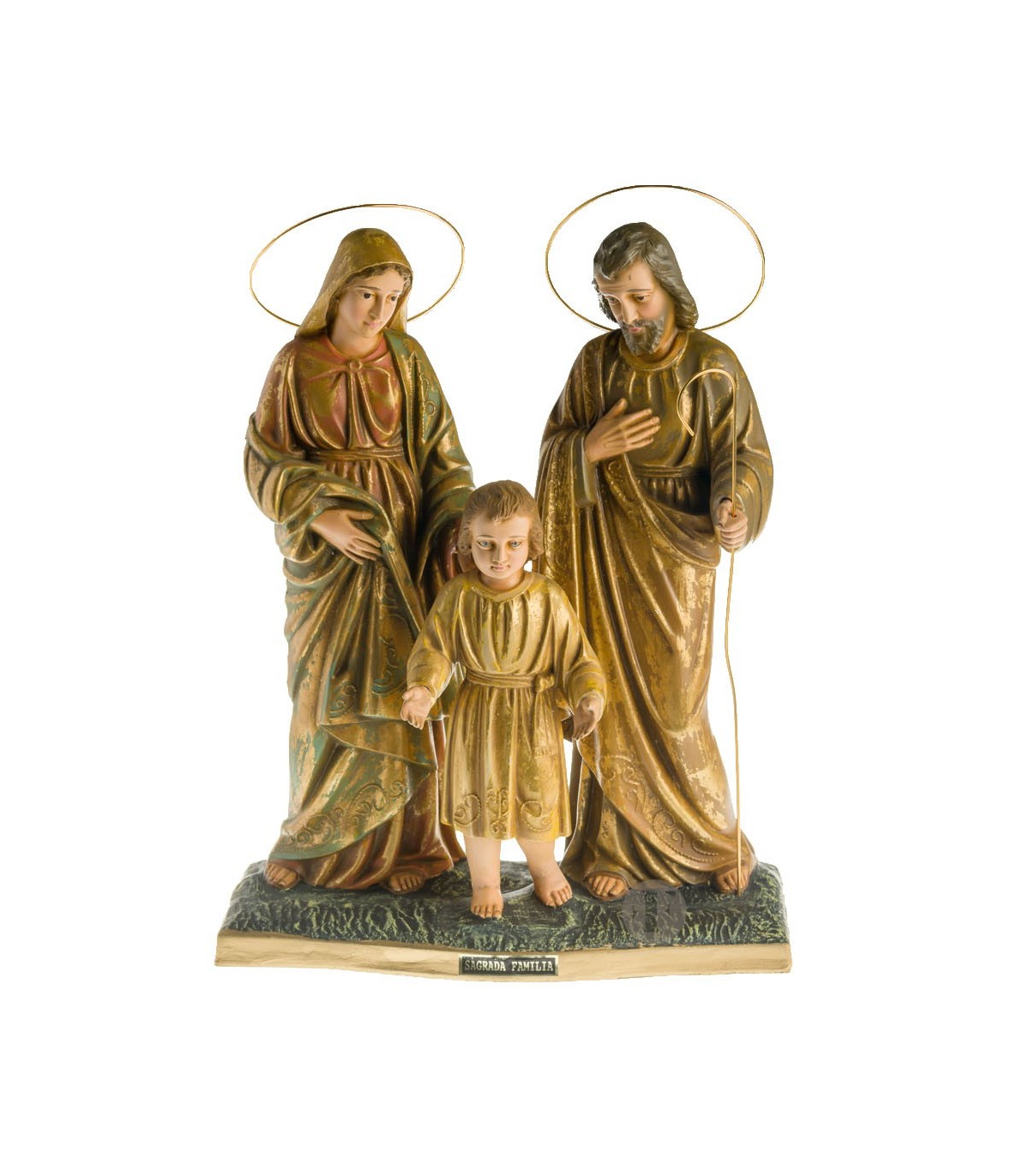 Sagrada Família em poliestireno reciclado com 30 cm de tamnaho. Pintura dourada antiga. Totalmente pintada à mão.