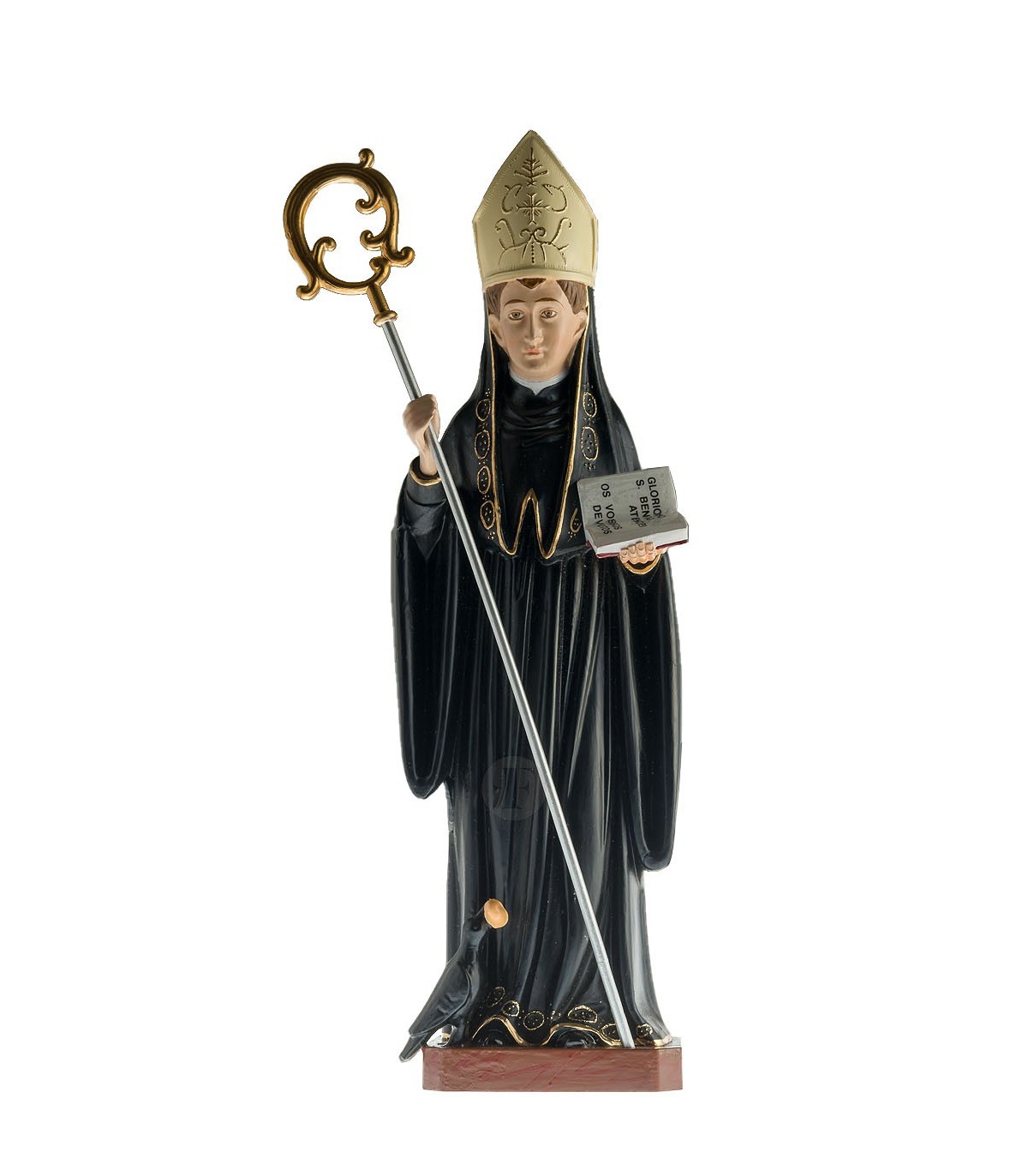 São Bento em poliestireno reciclado com 35 cm de tamanho. Pintura clássica, reprodução fiel do modelo original. Totalmente pintado à mão.