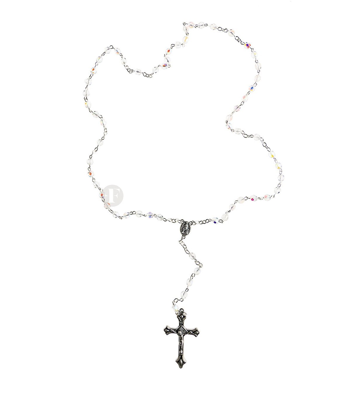 Terço de cristal transparente, com brilho. Feito à mão. Contas com 5 mm de tamanho.