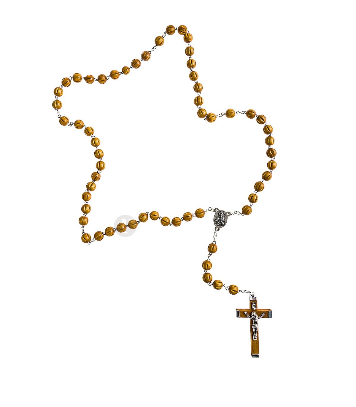 Terço de Madeira, gomos, castanho. Feito à mão. Contas com 6 mm de tamanho.