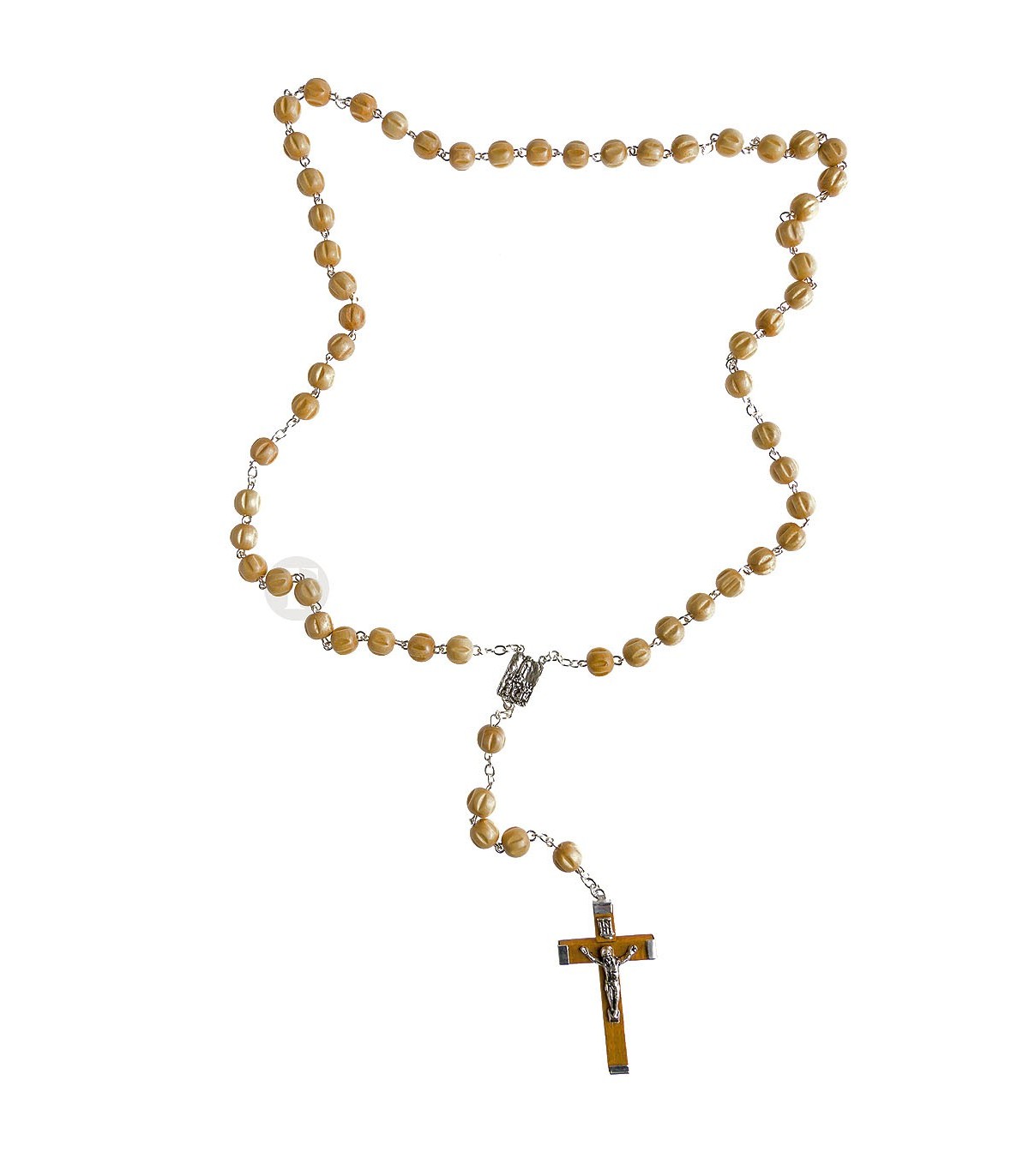 Terço de Madeira, gomos, bege. Feito à mão. Contas com 8 mm de tamanho.