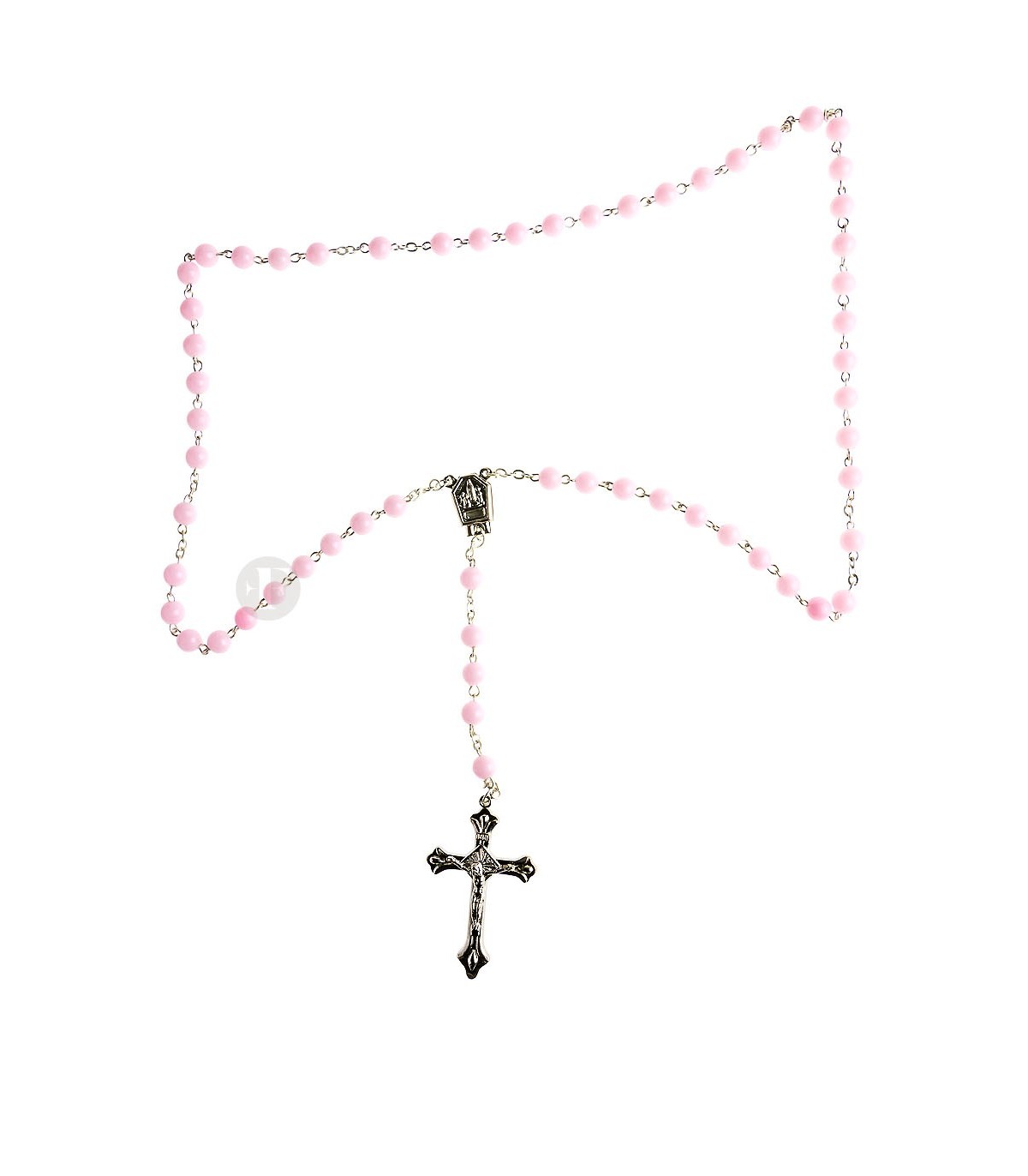 Terço de plástico, rosa. Feito à mão. Contas com 7 mm de tamanho.