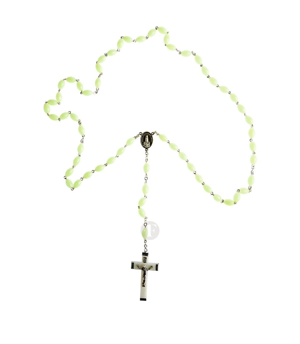 Terço de plástico Luminoso , contas ovais com 7/10 mm, c/ cruz luminosa